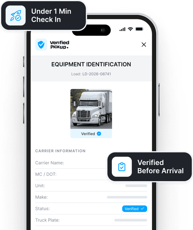Verify the carrier, driver, and equipment before the load is released, so the right driver picks up every shipment.