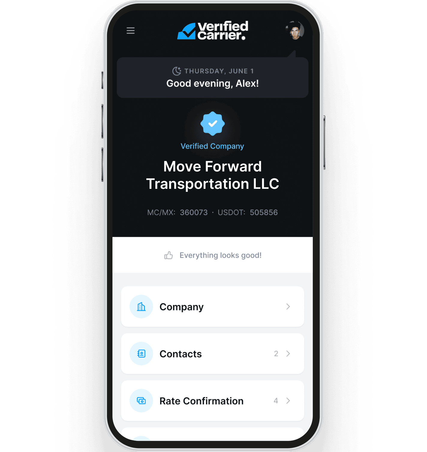 Maintain an active Verified Carrier status to access more freight, reduce onboarding friction, and ensure uninterrupted load access with faster approvals.