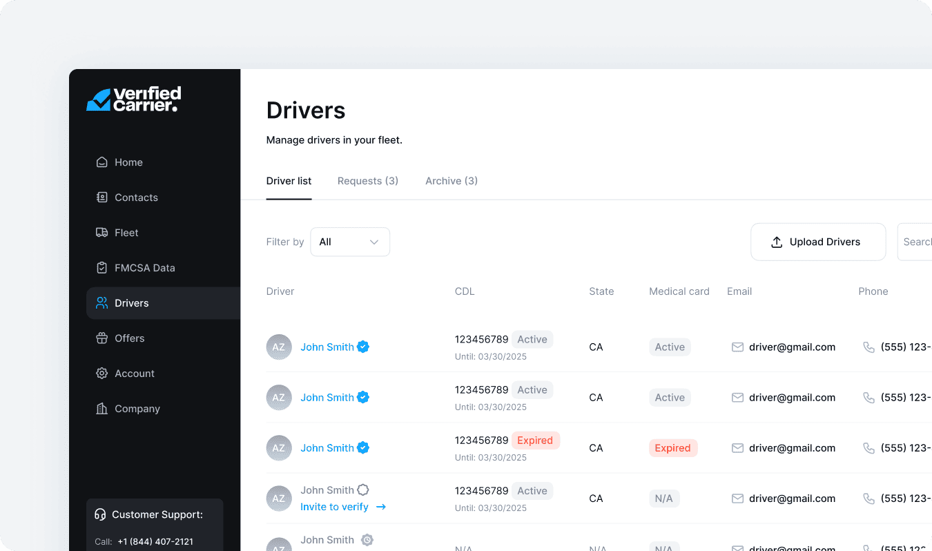 Drivers go through their own verification, including ID, facial recognition scans, and required compliance documents.
