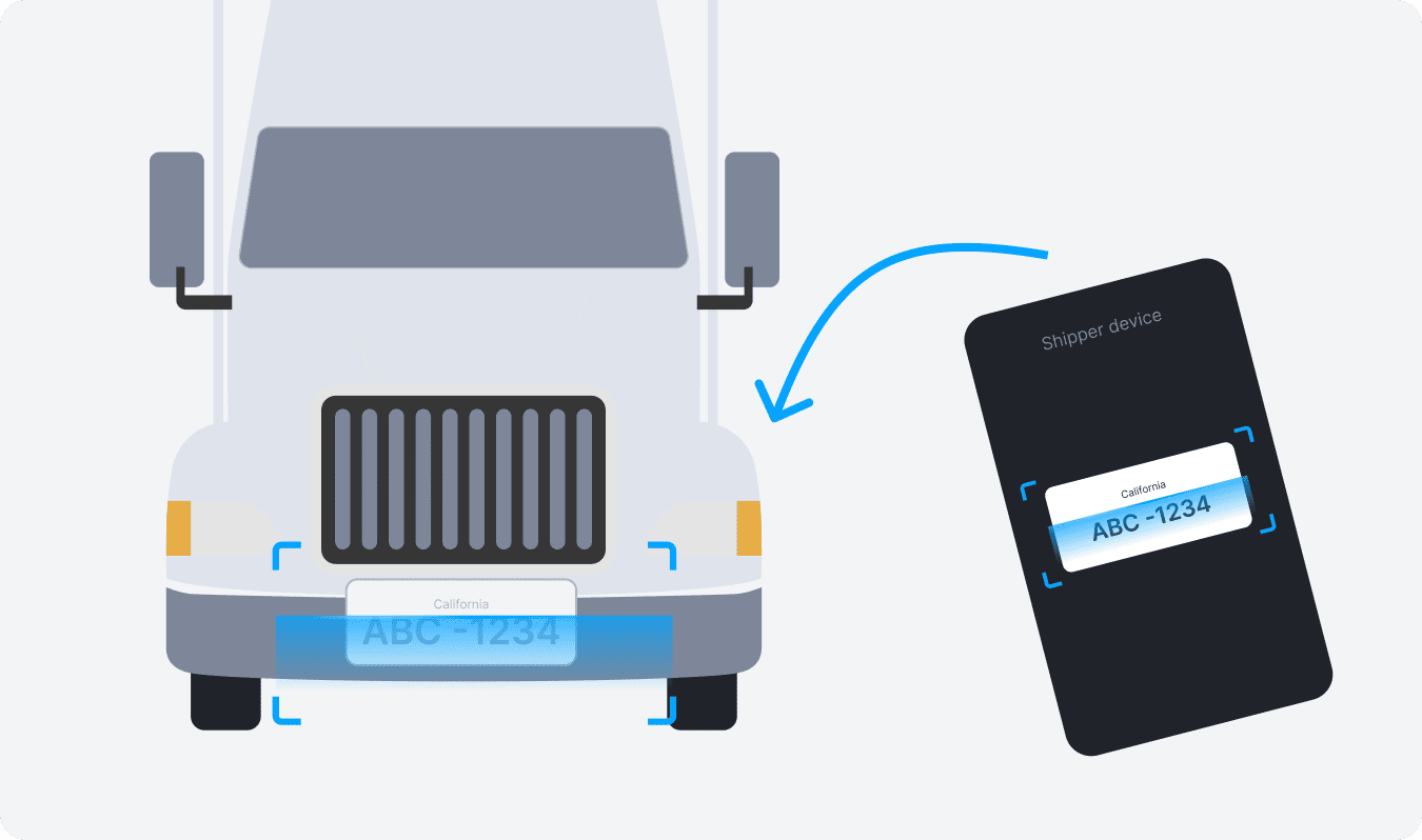 Once the driver is confirmed, the shipper confirms the equipment is tied to that carrier and driver by scanning the license plate.