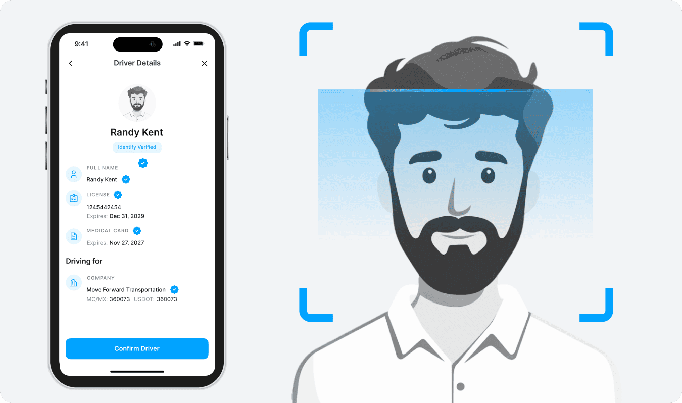 Once the driver arrives, the shipper confirms their identity and documentation using the shipper app by scanning the drivers ID and confirming everything matches.